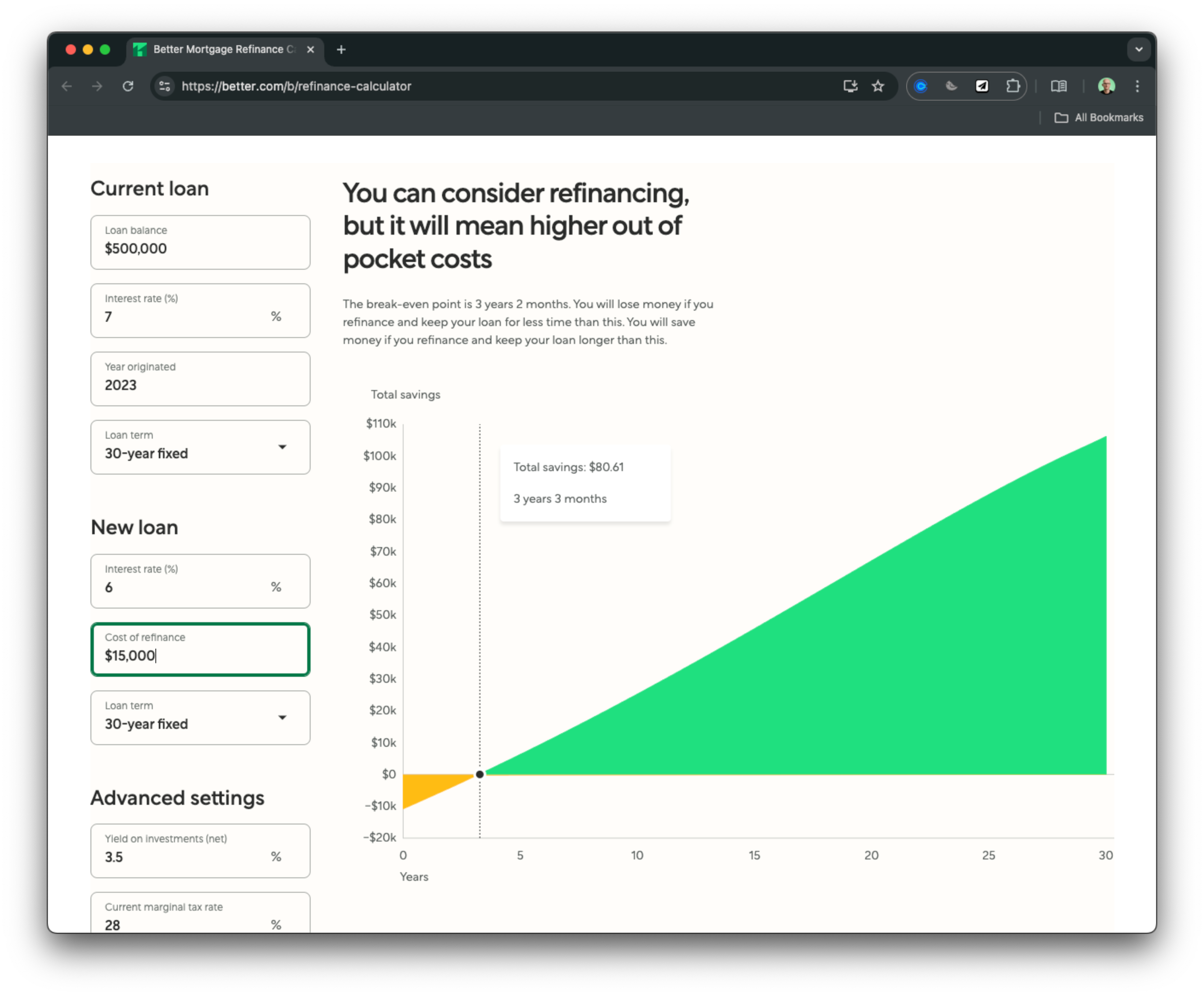 Pro Tip: Use the Better Mortgage Refinance Calculator to quickly assess your potential savings. Here's what it might tell you: