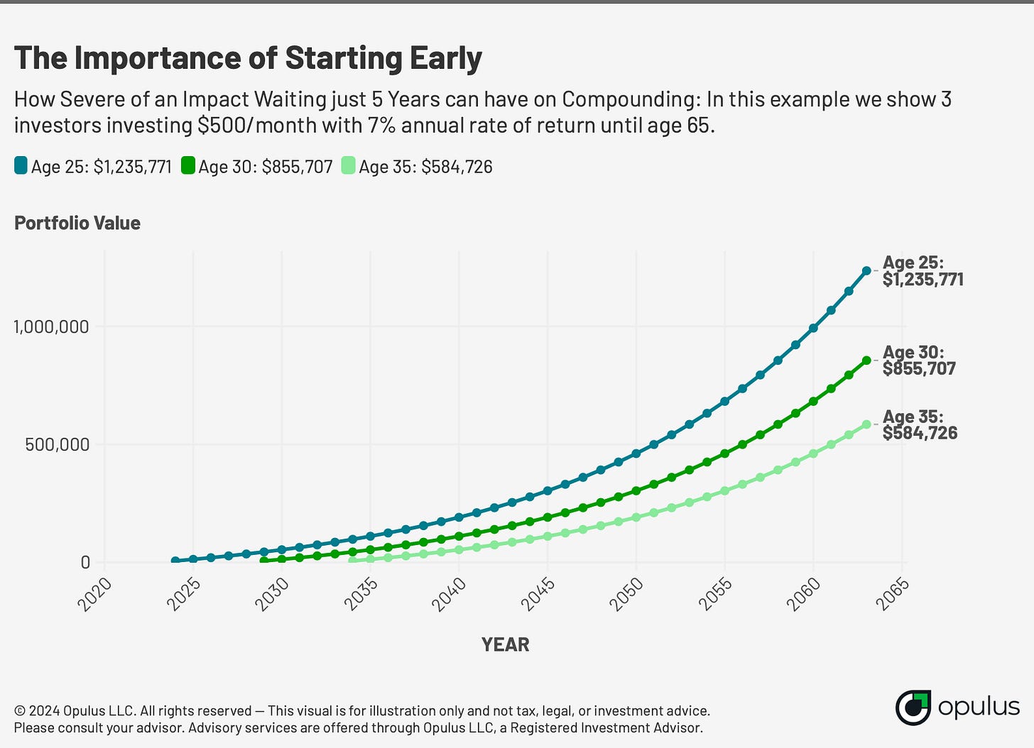 Time in the market beats timing the market. Even if it’s small, get your money working for you. Good Habits Compound!