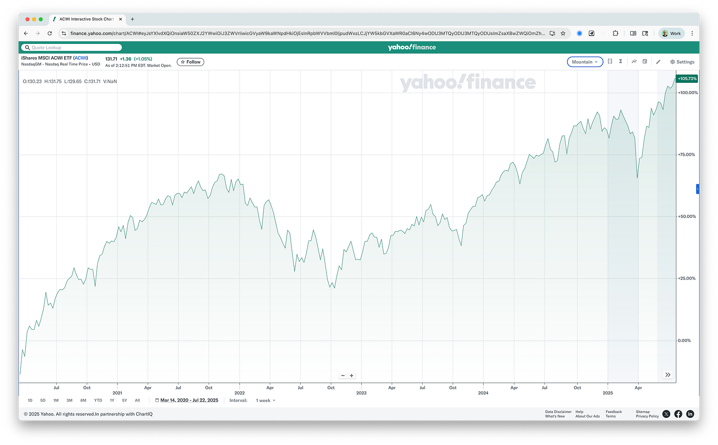 During the 2020 market crash, I watched investors panic-sell and miss an extraordinary recovery. Those who held tight didn't just recover—they captured a +105.78% gain from 03/14/2020 to 7/23/2025.