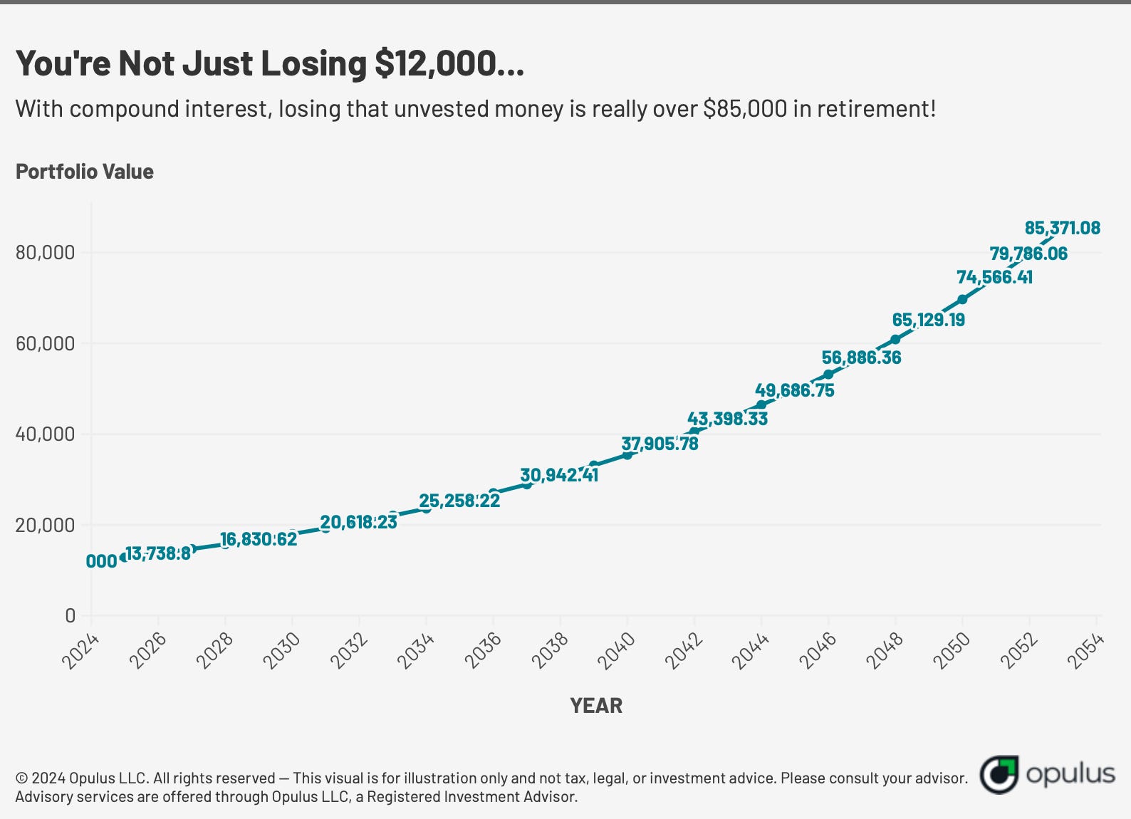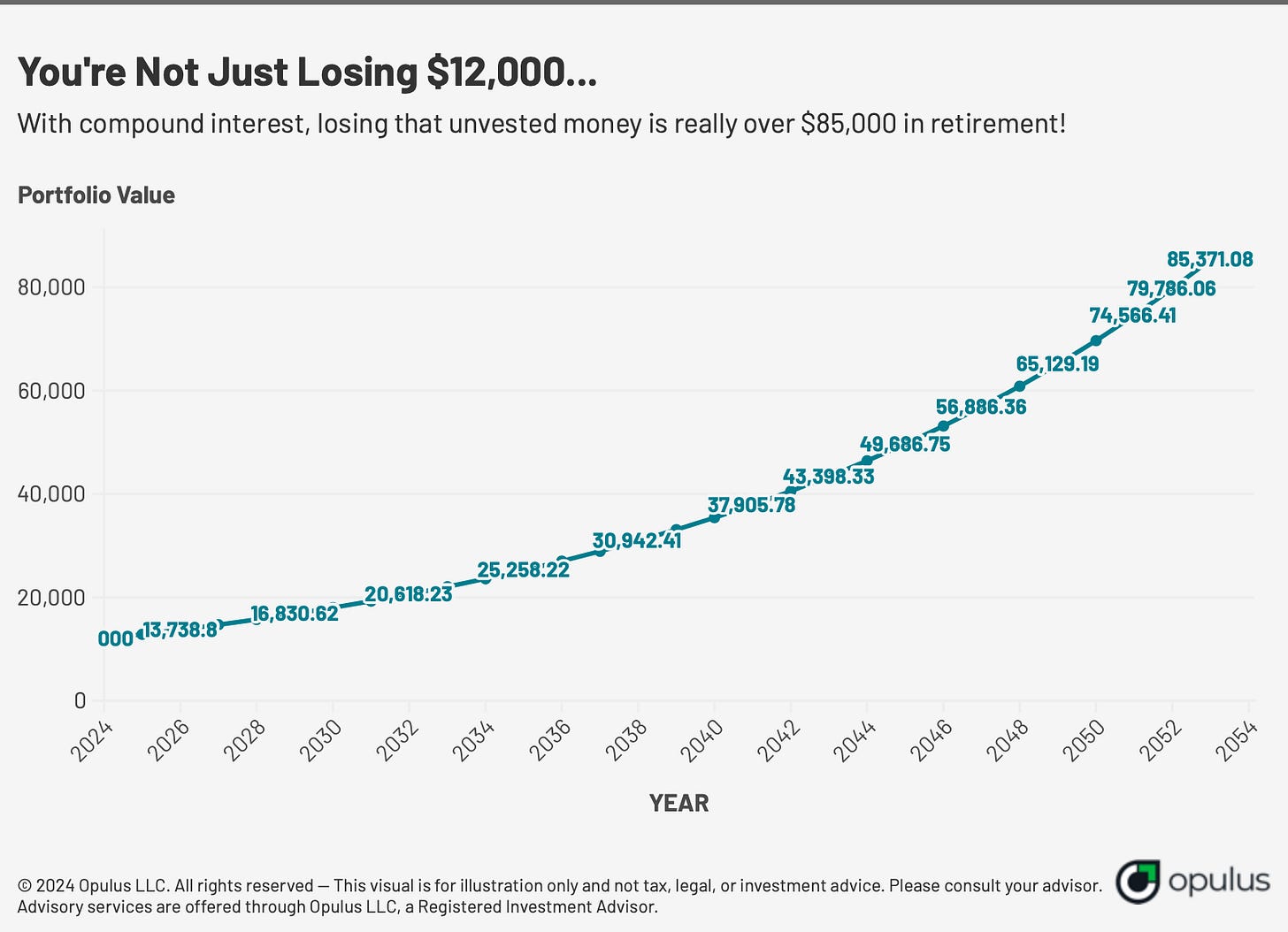 Every dollar you leave behind isn’t just lost—it’s money that could have grown tax-deferred for decades. For example, $12,000 left behind at age 35 could grow to over $85,000 by age 65, assuming a 7% annual return.Missed Opportunities: