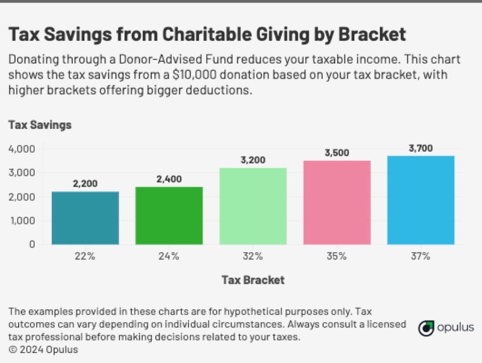 If you have investments that have significantly appreciated, donating them directly to charity can offer dual benefits: you’ll avoid capital gains taxes on the appreciation, and you’ll get a tax deduction for the asset. A Donor-Advised Fund (DAF) is a flexible way to manage charitable donations over time while getting the immediate tax benefit.