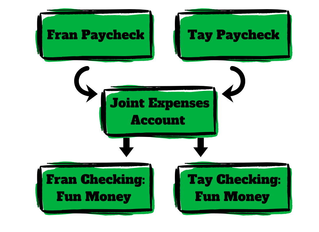For couples, consider having separate debit cards for personal spending freedom. You have your money, and I have mine - to spend on WHATEVER we choose.